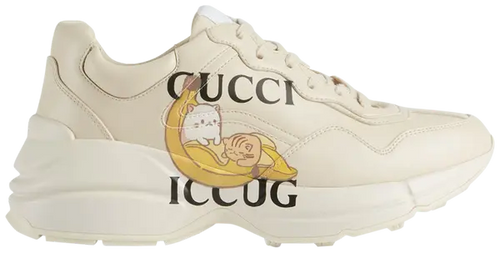 The Bananya x Gucci Wmns Rhyton 'Ivory' brings playful Japanese pop culture to high fashion. In this limited-edition release, Gucci partners with Bananya—the beloved anime character who lives inside a banana—to infuse whimsy into the luxury Rhyton silhouette. The ivory-toned leather upper provides a soft, premium canvas for the colorful Bananya character graphic, printed boldly on the lateral side.
