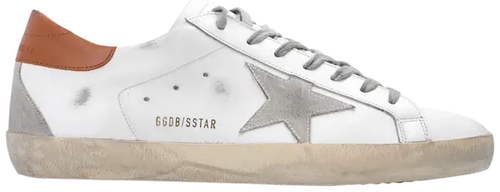 The Golden Goose Superstar 'White Light Brown' delivers understated sophistication with a deliberately weathered aesthetic. Crafted in Italy, the sneaker features a crisp white leather upper complemented by a light brown suede star logo and a softly muted ice-grey heel tab. Every detail is meticulously hand-distressed to evoke a sense of timeworn charm and effortless edge.