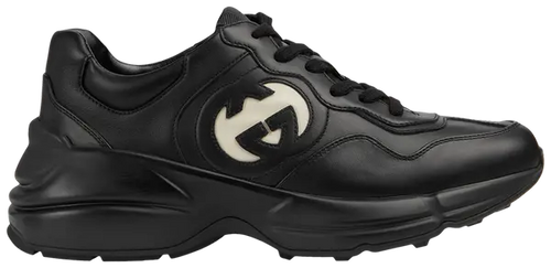 The Gucci Rhyton 'Black Ivory' sneaker is a bold yet versatile take on the brand’s iconic chunky sneaker design. Featuring a sleek black leather upper paired with contrasting ivory accents, this sneaker embodies luxury with a modern edge, making it a statement piece for any wardrobe.