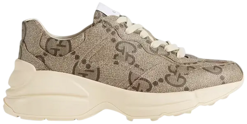Crafted as a tribute to Gucci's centennial, the Gucci Wmns 100 Rhyton Sneaker 'Beige Monogram' celebrates iconic heritage with a contemporary twist. This women’s exclusive silhouette features a canvas upper dressed in the House’s signature beige and ebony GG monogram pattern, evoking timeless luxury with every step. Set atop the bold and chunky Rhyton midsole, the design balances vintage appeal and modern comfort effortlessly.