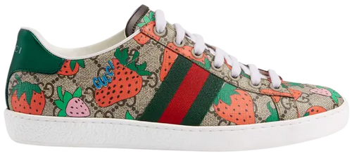 The Gucci Wmns Ace 'Strawberry Beige' brings whimsical charm to a classic silhouette with a vintage-inspired strawberry motif printed across its GG Supreme canvas upper. This playful reinterpretation of the iconic Ace blends the luxury house’s heritage monogram with retro pop-art flair, highlighting the brand’s irreverent approach to fashion.