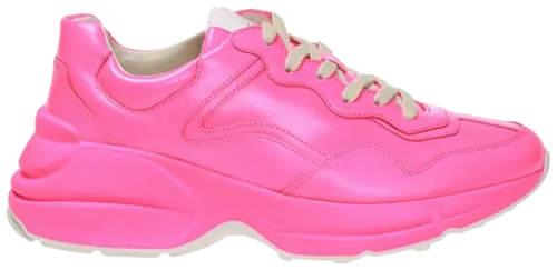 The Gucci Wmns Rhyton 'Fluorescent Pink' redefines bold luxury with an eye-catching monochromatic palette. Drenched in a vivid fluorescent pink hue from top to sole, this statement sneaker captures the house’s love for saturated color and vintage-inspired proportions.