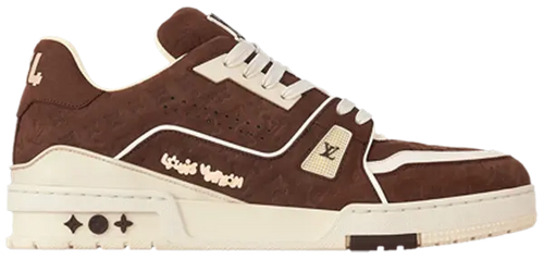 The Tyler, the Creator x Louis Vuitton Trainer 'Mocha' arrives as part of the artist’s exclusive Spring 2024 menswear capsule, infusing Louis Vuitton’s luxury heritage with Tyler’s whimsical design sensibility. This low-top sneaker is handcrafted in Italy and built with a rich chocolate brown nubuck upper, detailed with an embossed reinterpretation of Louis Vuitton’s Monogram through Tyler’s creative lens.