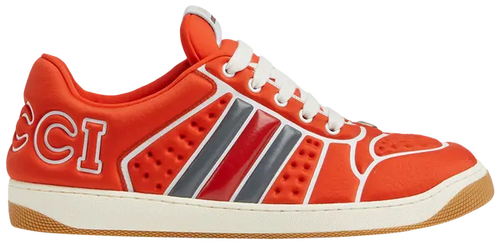 The Gucci Screener Sneaker 'Orange Neoprene' delivers a bold, contemporary look with a vibrant color palette and innovative materials. Inspired by vintage sportswear, this sneaker combines luxury craftsmanship with a retro aesthetic, making it a standout choice for modern lifestyles.
