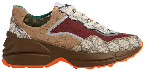 The Gucci Women's GG Rhyton 'Beige Brick Red' elevates the vintage-inspired chunky sneaker with refined Italian craftsmanship and heritage branding. Crafted in beige GG Supreme canvas, this iteration features a bold brick red Gucci logo print stamped prominently across the lateral side, creating a vibrant contrast against the neutral-toned upper.