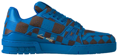 The Louis Vuitton Trainer 'Damier Pop - Blue' 2024 reimagines the maison’s iconic sneaker through a bold and graphic lens. This version showcases the instantly recognizable Damier Pop pattern, magnified and embossed across a saturated blue leather upper. Crafted in Italy from premium materials, the sneaker fuses streetwear energy with heritage craftsmanship.
