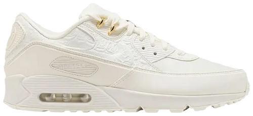 The Slawn x Air Max 90 'Sail' blends refined artistry with timeless Nike design. London-based artist Slawn brings an elevated, minimalist vision to the iconic Air Max 90, dressing the sneaker in tonal ivory hues and detailed embossing that nods to sculptural textures. With metallic gold accents and premium leather construction, this edition reflects Slawn’s unique aesthetic—where classic form meets subtle luxury.