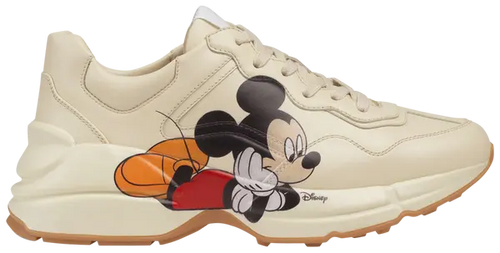 The Disney x Gucci Wmns Rhyton 'Mickey Mouse' celebrates one of pop culture’s most iconic characters through the lens of high fashion. Part of Gucci’s collaboration with Disney, this special edition of the women's Rhyton sneaker features a bold graphic of Mickey Mouse printed prominently on the ivory-toned upper.