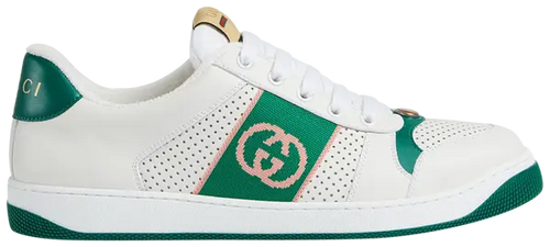 The Gucci Screener 'Interlocking G - White Green' sneakers represent a sophisticated fusion of heritage design and contemporary fashion, ideal for completing both casual and polished ensembles.