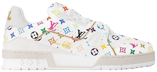 The Takashi Murakami x Louis Vuitton Wmns Trainer 'White' 2025 marks a bold fusion of art and fashion, reuniting the Maison with the iconic Japanese contemporary artist known for his vibrant, playful style. Crafted in Italy, this exclusive women's sneaker features a pristine white calf leather upper adorned with Murakami’s signature multicolor reinterpretation of the Louis Vuitton monogram.