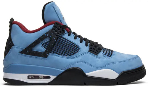 The Travis Scott x Air Jordan 4 Retro 'Cactus Jack' marks the Houston rapper’s first official Jordan Brand collaboration, blending nostalgic sports inspiration with streetwear flair. Drenched in University Blue, the upper is constructed from premium Durabuck nubuck leather, referencing the signature colors of the former Houston Oilers NFL team.